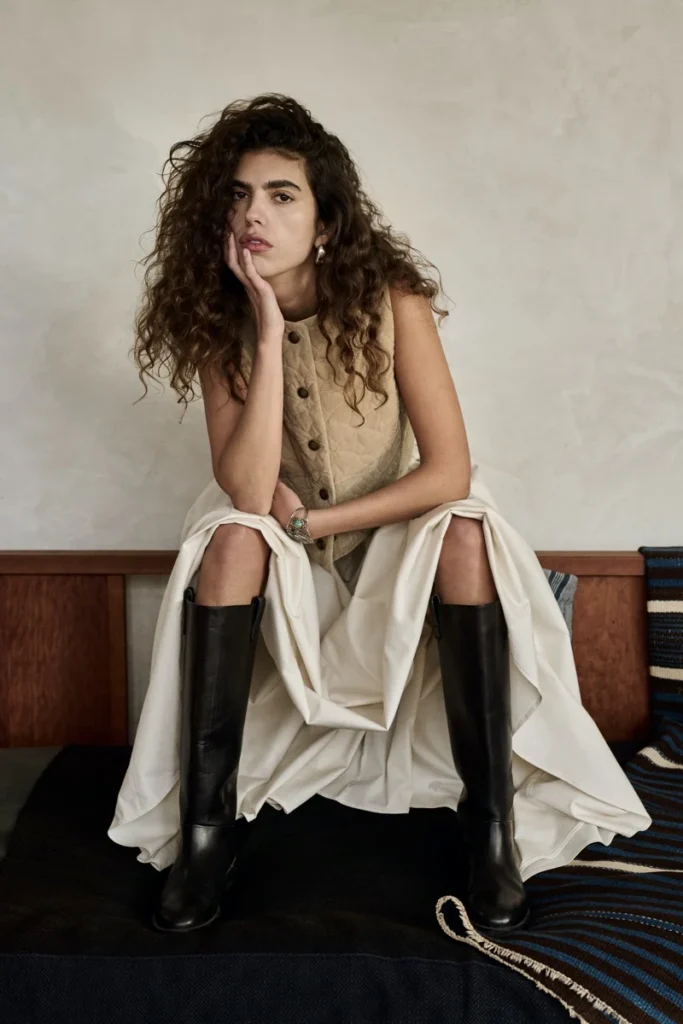 This isn’t fashion that needs bright studio lights or dramatic backdrops. Instead, it thrives alongside warm sky tones, desert horizons, and the gentle wash of afternoon light — making every shot feel intuitive and atmospheric.