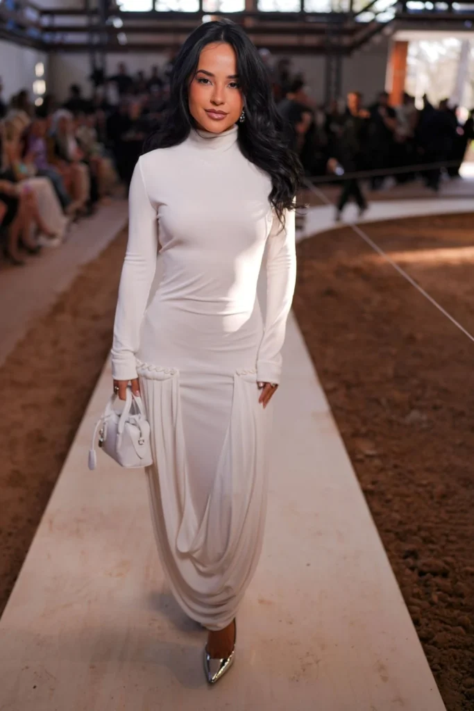 Becky Gโs outfit reflected these values perfectly. The allโwhite look, with its simplicity and precision, aligned with the brandโs ethos of refined minimalism. Rather than overwhelming the eye with excess detail, the design invites appreciation for craftsmanship and silhouette.